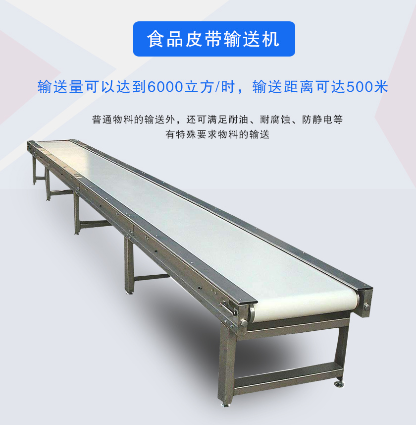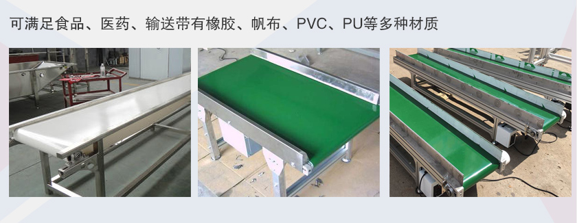 食品皮帶輸送機(jī)主要應(yīng)用于食品行業(yè),采用食品輸送帶,可滿足食品、醫(yī)藥、輸送帶有橡膠、帆布、PVC、PU等多種材質(zhì),除用于普通物料的輸送外,還可滿足耐油、耐腐蝕、防靜電等有特殊要求物料的輸送。另外輸送帶上還可以增加推板、側(cè)擋板、裙邊等附件,以滿足不同工藝的要求,食品皮帶輸送機(jī)主要用于輸送食品行業(yè)散裝及成件物料的運(yùn)輸。