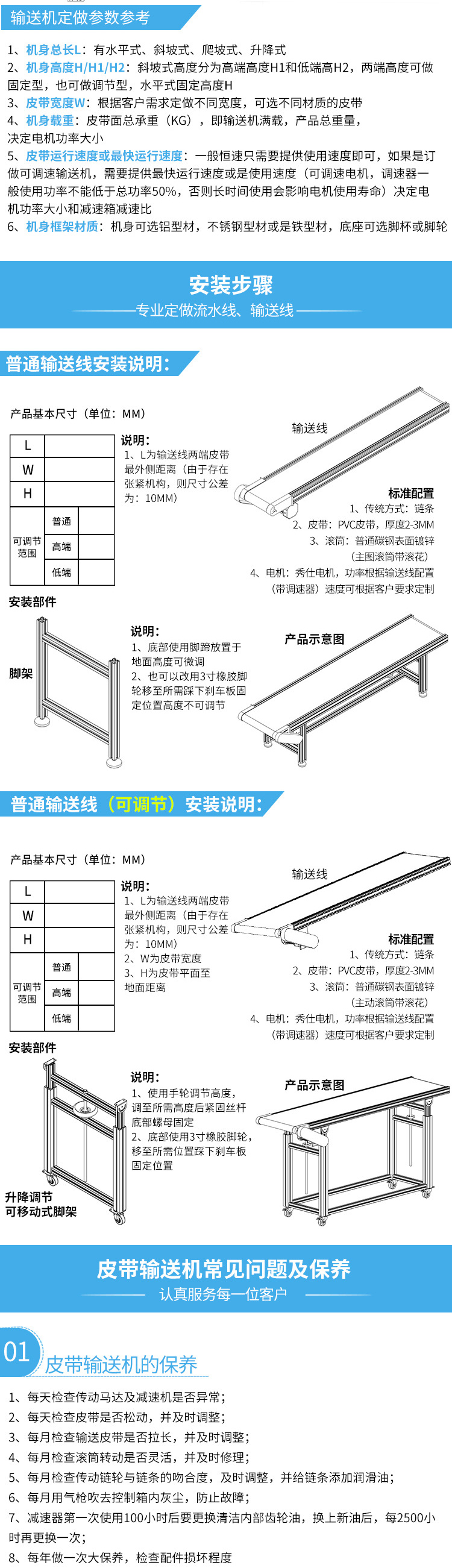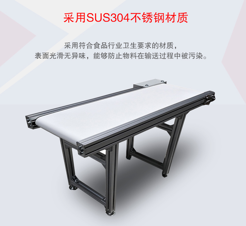 1、食品皮帶輸送機(jī)的機(jī)架采用SUS304不銹鋼材質(zhì),輸送帶采用符合食品行業(yè)衛(wèi)生要求的材質(zhì),表面光滑無(wú)異味,能夠防止物料在輸送過(guò)程中被污染。