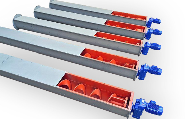 一臺螺旋輸送機通常由螺旋機本體、進出裝置、驅(qū)動裝置三大部分組成。