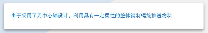 無軸螺旋輸送機可輸送傳統有軸螺旋輸送機和皮帶輸送機不能或不易輸送的物料,如顆粒狀和粉狀物料、濕的和糊狀物料、半流體和粘性物料、易纏繞和易堵塞物料、有特殊衛生要求的物料。無軸螺旋輸送機的性能特點是:無軸螺旋輸送機與傳統有軸螺旋輸送機相比,由于采用了無中心軸設計,利用具有一定柔性的整體鋼制螺旋推送物料,因而具有以上突出優點,性能好。與有軸螺旋輸送機相比,重量和成本都會減少不少。